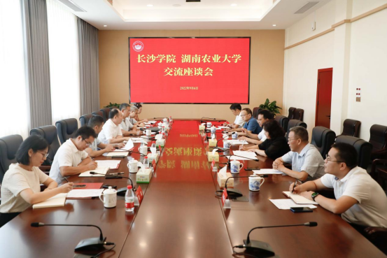 会上,湖南农业大学党委书记陈弘对黄立宏校长一行的来访表示热烈欢迎,并介绍了湖南农业大学的办学定位、学科建设与研究生教育相关情况,他表示两校加强交流合作,能够实现互利共赢,湖南农业大学将全力支持。黄立宏校长介绍了长沙学院学科与硕士点建设基本情况,以及长沙学院与湖南农业大学前期在科学研究、队伍建设、研究生联合培养等方面的合作基础,他表示希望继续深化双方在联合培养研究生方面的交流合作,在原有基础上,扩大联合培养研究生的学科覆盖面,进一步优化合作机制,做好导师遴选与聘用工作。两校党政办、研究生院等职能部门负责人参加会议。